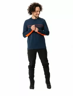 Dieses schlichte, dabei hoch funktionale Multisport Trikot ist ein tolles Kombiprodukt für Mountain-Biker, die auch im Winter auf Tour gehen wollen. Das leichte Rundhals Trikot aus recyceltem Polyester bietet dank hohen Stretchanteils volle Bewegungsfreiheit. Rücken und Ärmel sind zum Schutz vor Auskühlung länger geschnitten. Die Schulternähte wurden nach hinten unten versetzt, um Reibung beim Fahren mit einem Rucksack zu verhindern. Das innen kuschlig angeraute Stretch Material aus recyceltem Polyester ist äußerst atmungsaktiv und feuchtigkeitsregulierend, dabei pflegeleicht und schnelltrocknend. Es trägt sich sehr angenehm auf der Haut und ist mit Eco Finish PFC-frei wasser- und schmutzabweisend ausgerüstet. Das VAUDE Green Shape-Label steht für ein umweltfreundliches, funktionelles Produkt aus nachhaltigen und bluesign® zertifizierten Materialien. Als Mitglied mit Leader Status bei der unabhängigen Organisation Fair Wear engagiert sich VAUDE für faire Arbeitsbedingungen und faire Löhne. Zudem ist dieses Produkt klimaneutral: Die Emissionen aus Materialien, Herstellungsprozess und Versand wurden ganzheitlich ermittelt und systematisch reduziert. Aktuell nicht vermeidbare Emissionen wurden vollständig über die unabhängige Non-Profit-Organisation „myclimate“ kompensiert.